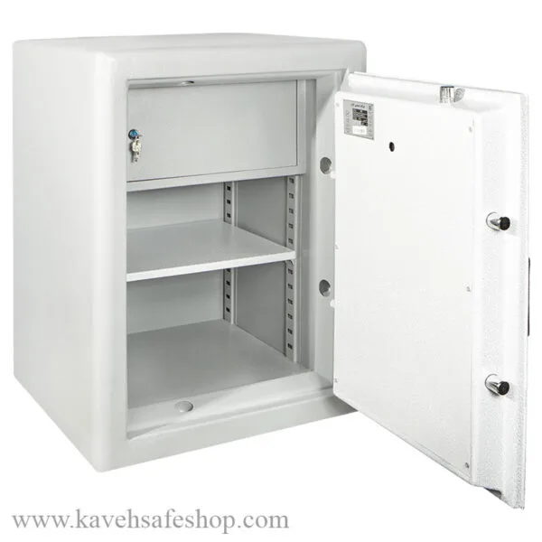 گاوصندوق کاوه مدل ۵۵۰kdg مجهز به ۱ عدد صندوقچه و یک عدد طبقه متحرک می باشد.